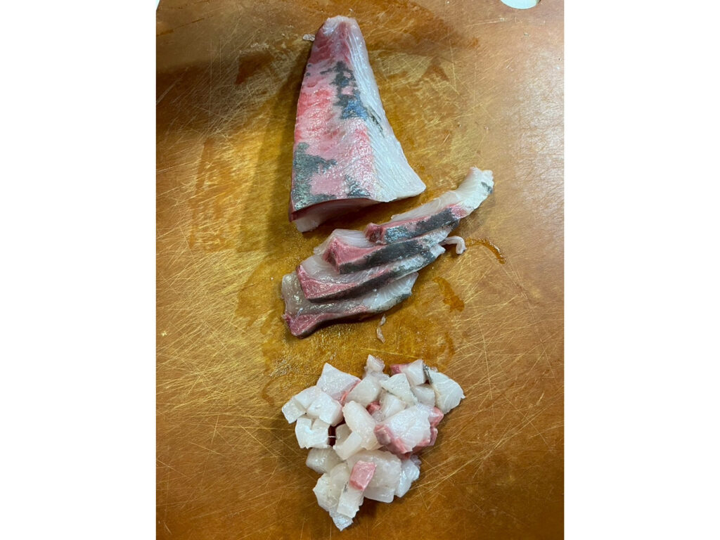 市場に流通しているカンパチの殆どは養殖の為アニサキスの心配はほぼありませんが心配な場合は火を通すか、なめろうの様に細かくミンチにして与えるのが良いと思います。
