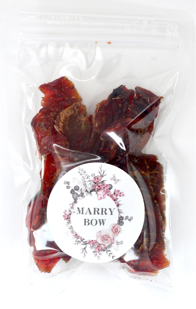 マリーバウでは脂質の少ない牛タンの先部分をジャーキーに加工しています。