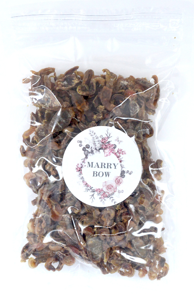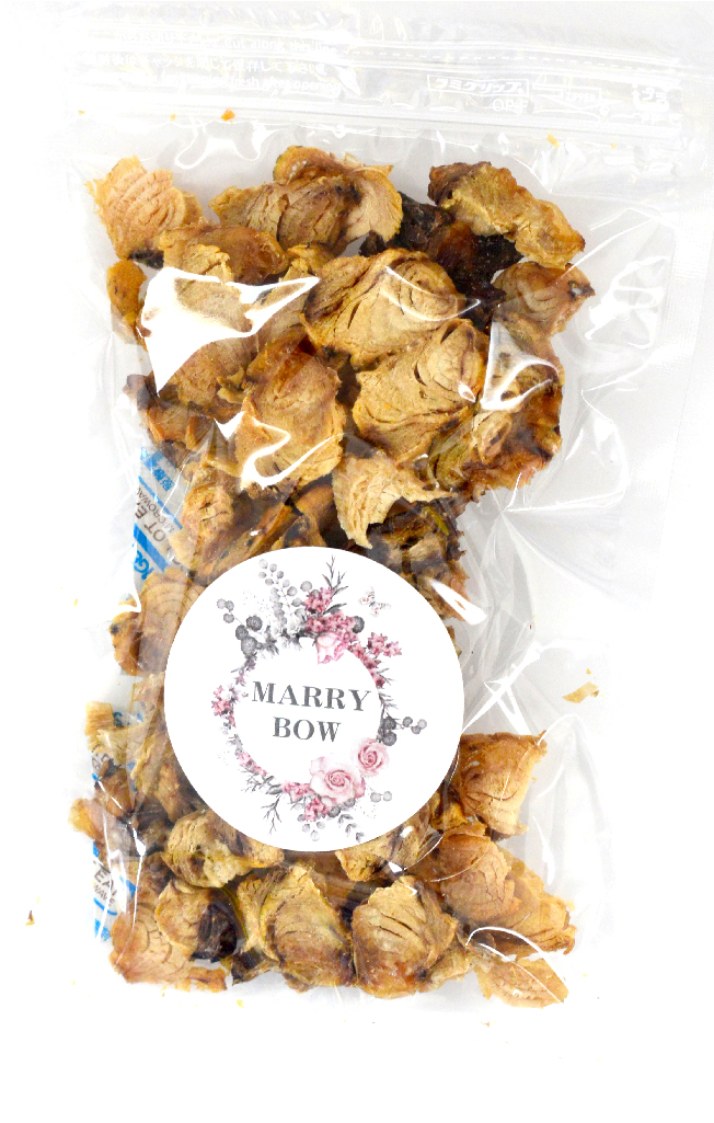 砂肝は全てが筋肉なので脂肪分はほぼありません。高タンパク低カロリー。レバーと同じくらい鉄分が豊富でビタミン12やビタミンKの含有量も多いため、ホルモン系の持病があり若干貧血ぎみのうちの子(ピーチ)にとっても最適な食品です。砂ずりというだけの事はあり結石の予防としても最適な食材。更に食感が落ちる事が理由で高級鶏肉店では調理の際に取り除いてしまう砂ずりを包む砂肝の銀皮部分こそが正にオールコラーゲンで形成されている部位。犬にとって最も取り入れたい食材である事に辿つき、こだわりとプライドを持って仕入れられている高級ローストチキンのお店さんで出た調理仕立ての新鮮な銀皮をお譲りいただける事になり、この商品が誕生しました。