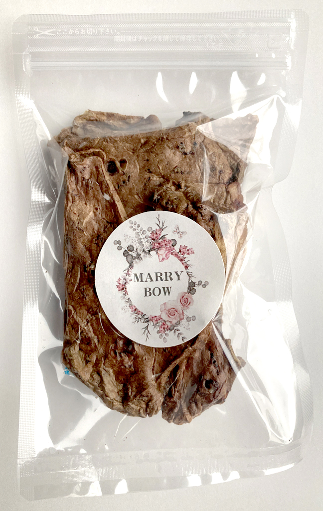 ミネラル、ビタミンなどの栄養素が豊富に含まれている牛肺は免疫力を高め老化防止の効果も期待できます。またコラーゲンやエラスチンなどの弾性繊維が多いため皮膚や関節などの健康に保つ事が出来ます。超!低カロリーなので肥満傾向のあるわんちゃんにも安心して食べてもらえるおやつです。嗜好性が高くサクッとした食感も好まれます。